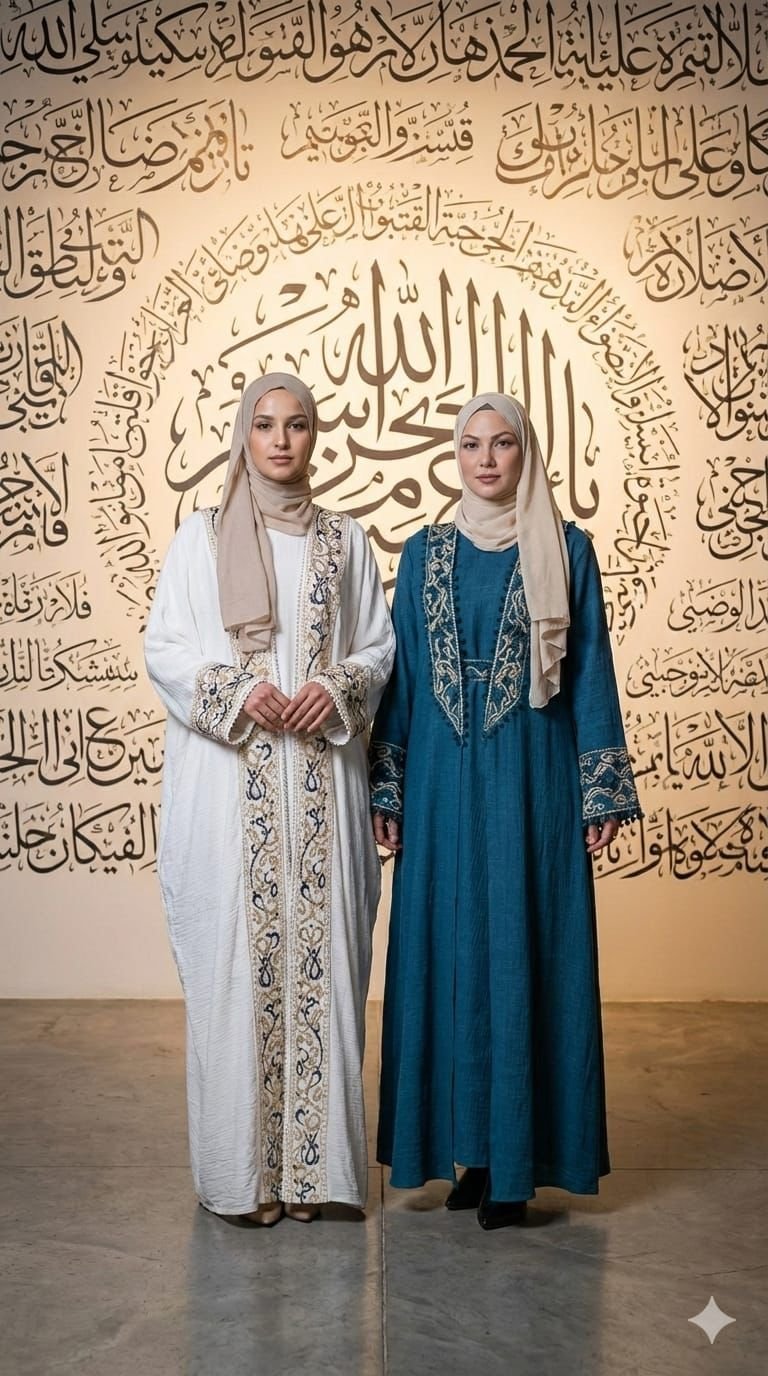 يحتفي طقم توين هارموني بالأناقة والانسجام بأسلوب يجمع بين الجمال والروح المشتركة. يتكوّن من عبايتين متناسقتين؛ الأولى بيضاء بتطريز ذهبي وأزرق ناعم، والثانية تركواز تعكس نفس النقوش الفاخرة بدرجة لونية غنية ومكمّلة. يجمع هذا التناسق بين التفرد والوحدة في آن واحد.