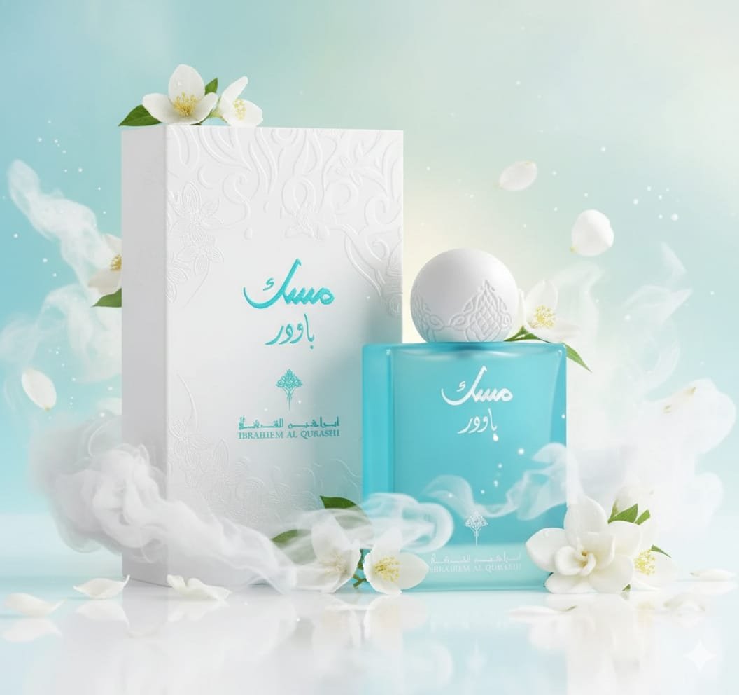اكتشفي السكينة مع مسك بادور من إبراهيم القرشي — عطر يهمس بالأناقة من خلال ضباب زهري ومسك ناعم. يأتي في زجاجة تركوازية بغطاء أبيض منحوت، ويجسد النقاء والرقي والأنوثة الخالدة. تحيط به زهور بيضاء وضباب عطري، مما يجعله مثاليًا لصباحات الربيع، وأمسيات رمضان، أو لحظات التأمل الهادئة. مسك بادور هو تحية للنعومة، مغلفة بالفخامة والرقي العربي.