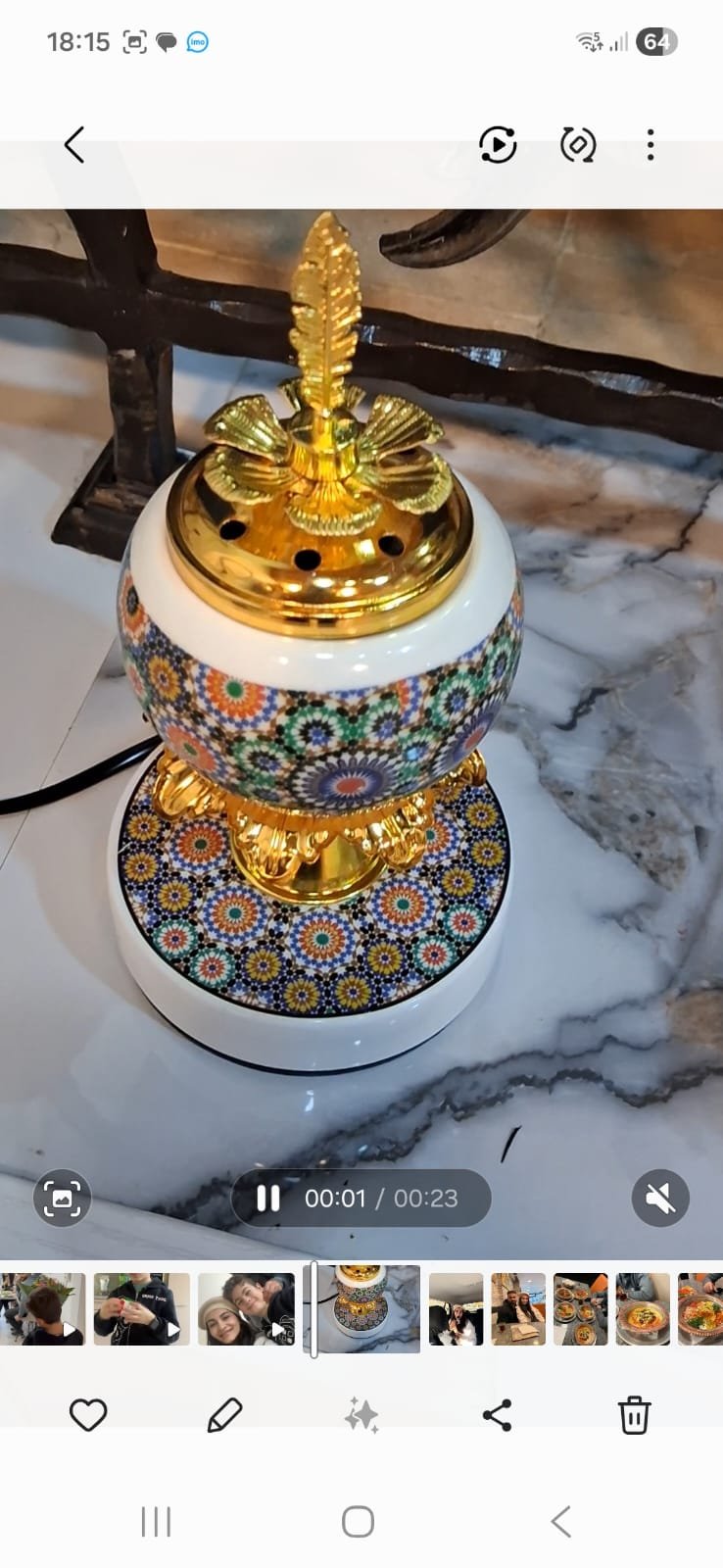 A premium electric incense burner featuring a colorful mosaic design and an elegant gold leaf handle, adding warmth and sophistication to any space. Price is negotiable.